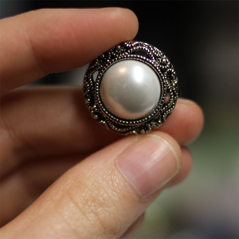 One pair of single flare surgical steel plugs (with o-rings) with an adorable silver and pearl design, very pretty!