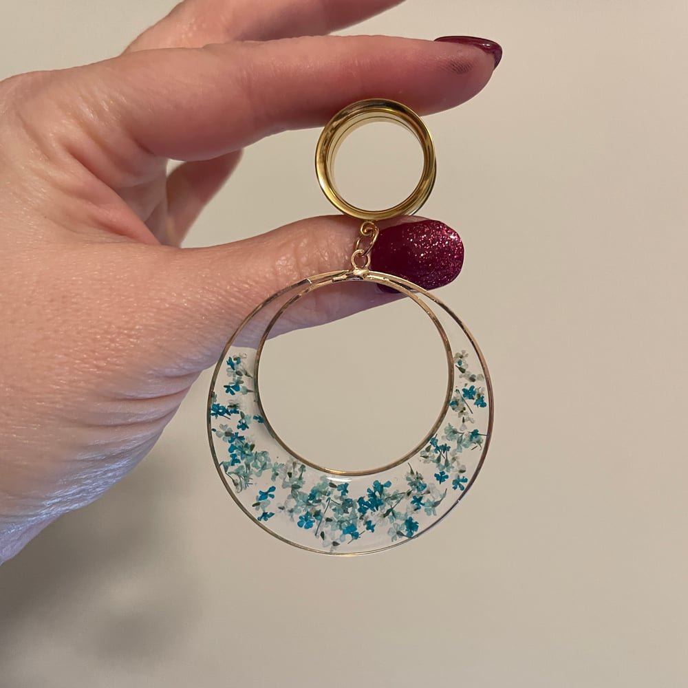 Pressed Flower Hoop Tunnel Dangles (sizes 4g-2”)