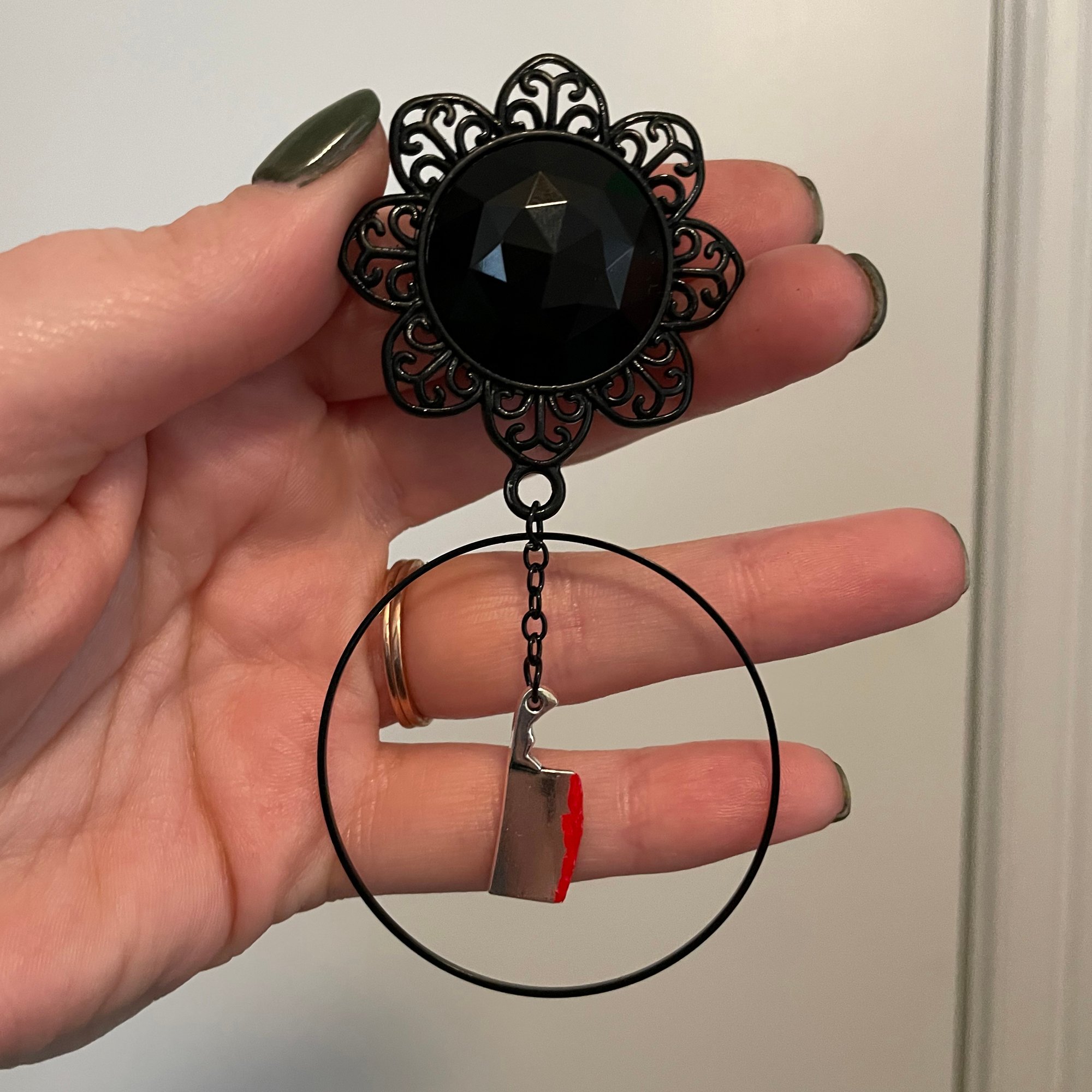 Black Gem Cleaver Hoop Dangles (sizes 7/8-1 1/2)