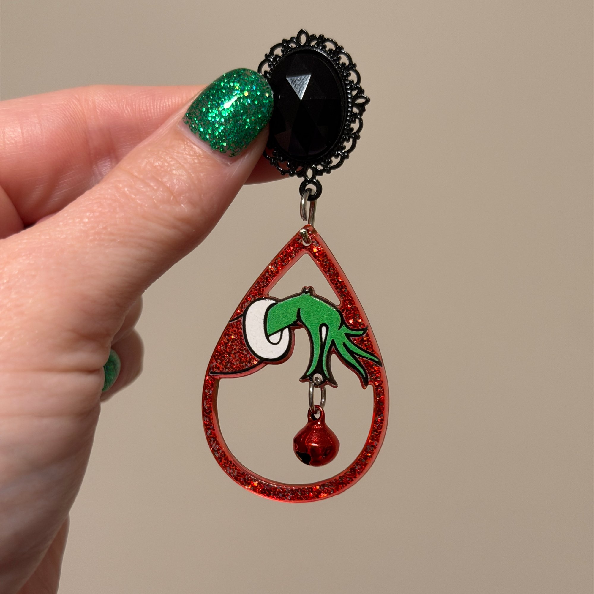 Black Gem Hand Hoop Dangles (sizes 2g-5/8)