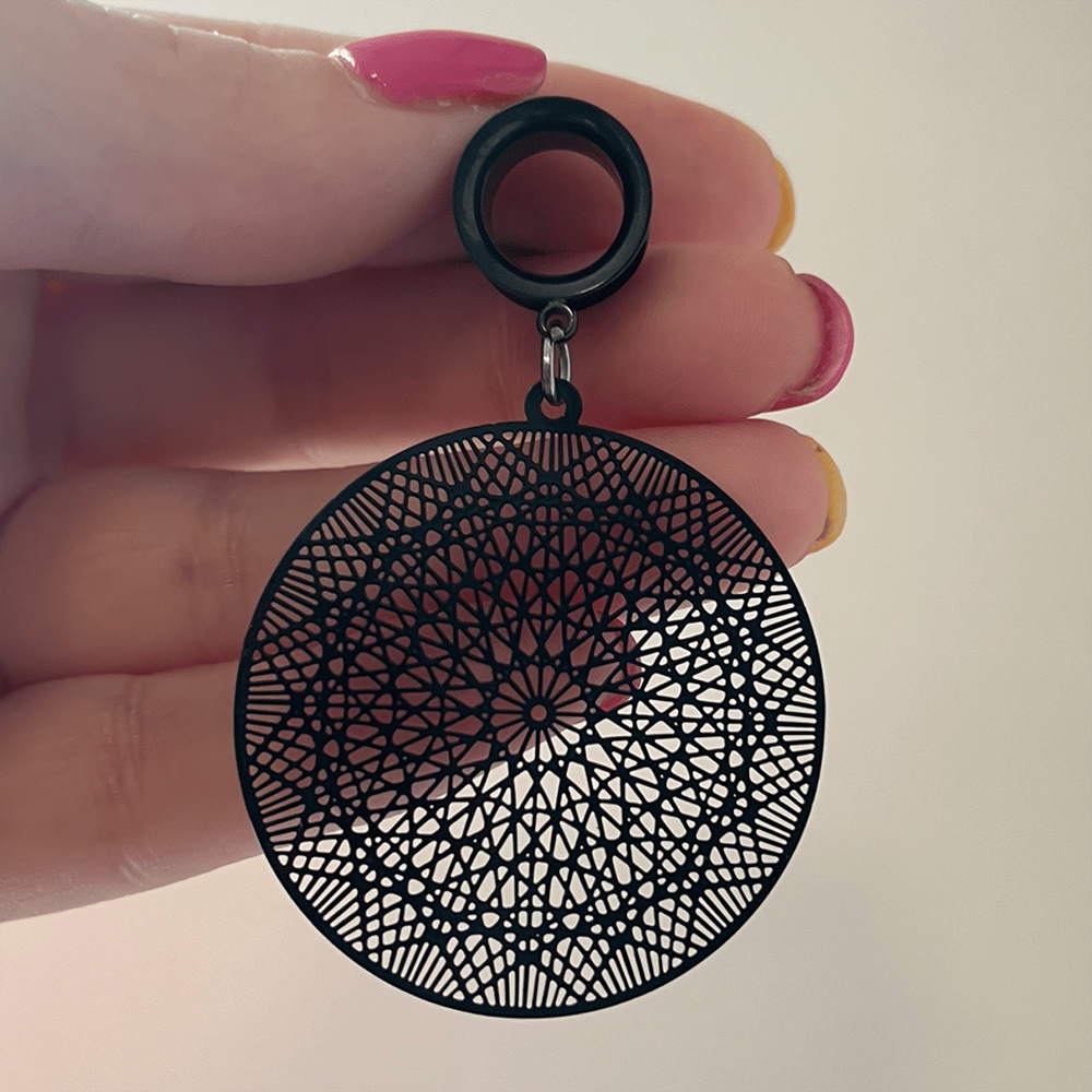 Black Mandala Hoop Tunnel Dangles (sizes 2g-2")