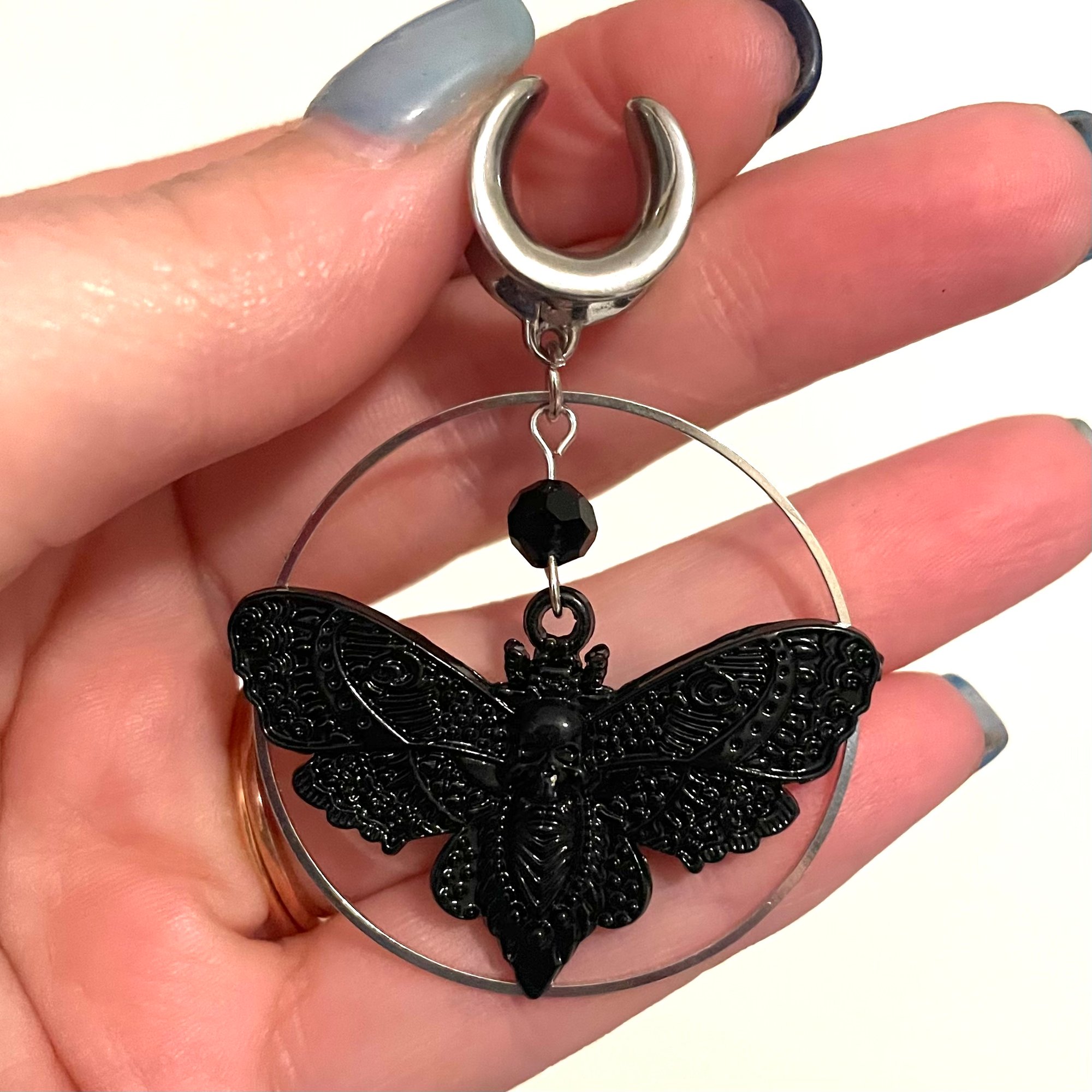 Black Moth Hoop Saddle Dangles (sizes 2g-1 1/2)
