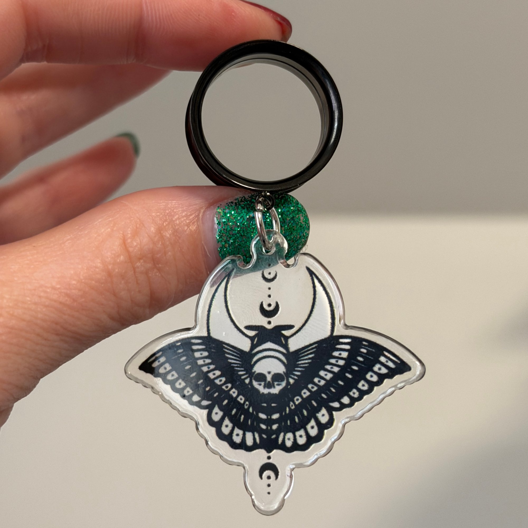 One pair of double flare surgical steel screw back tunnels with this awesome celestial inspired death moth dangle!