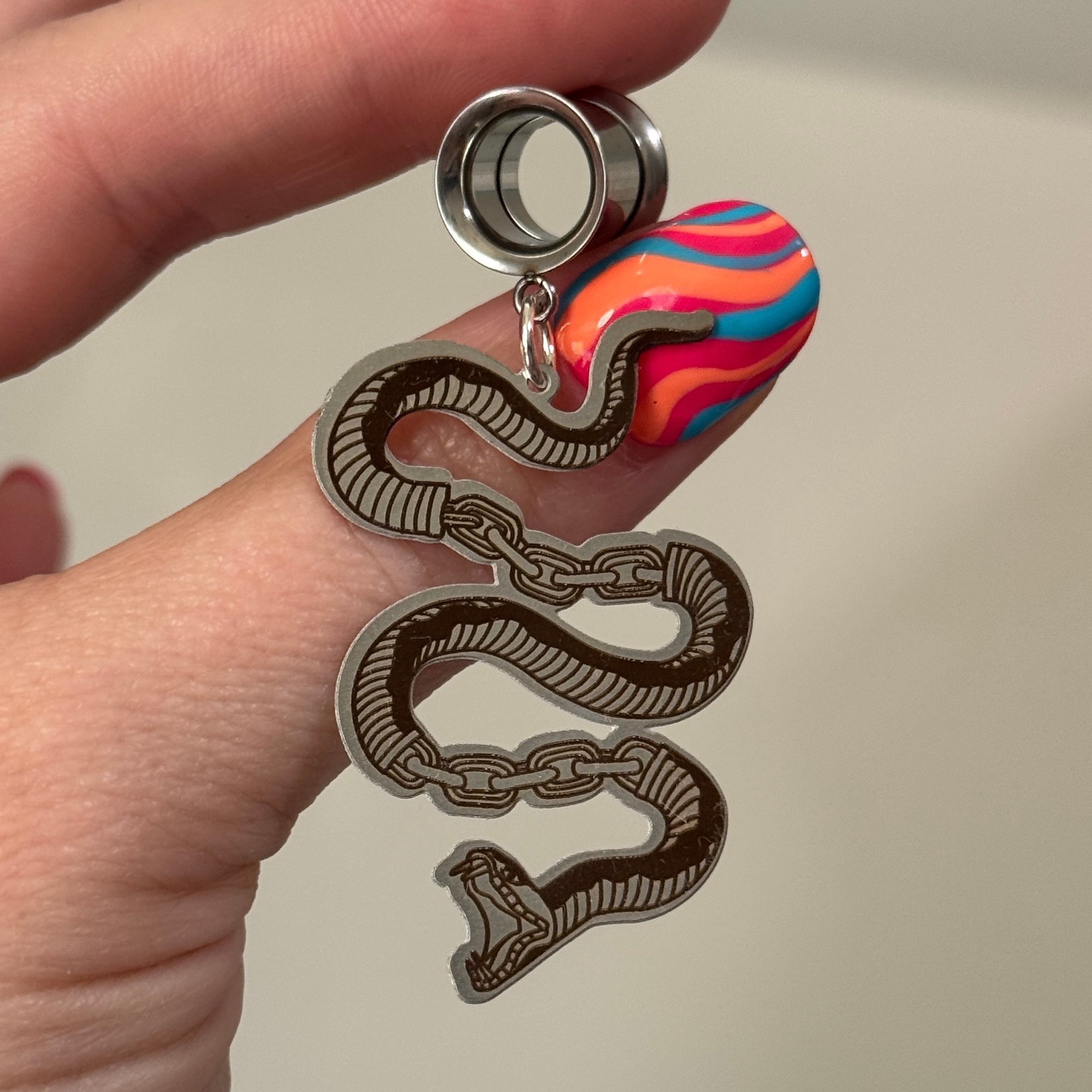 One pair of surgical steel saddles/tunnels with an very cool chain snake dangle!