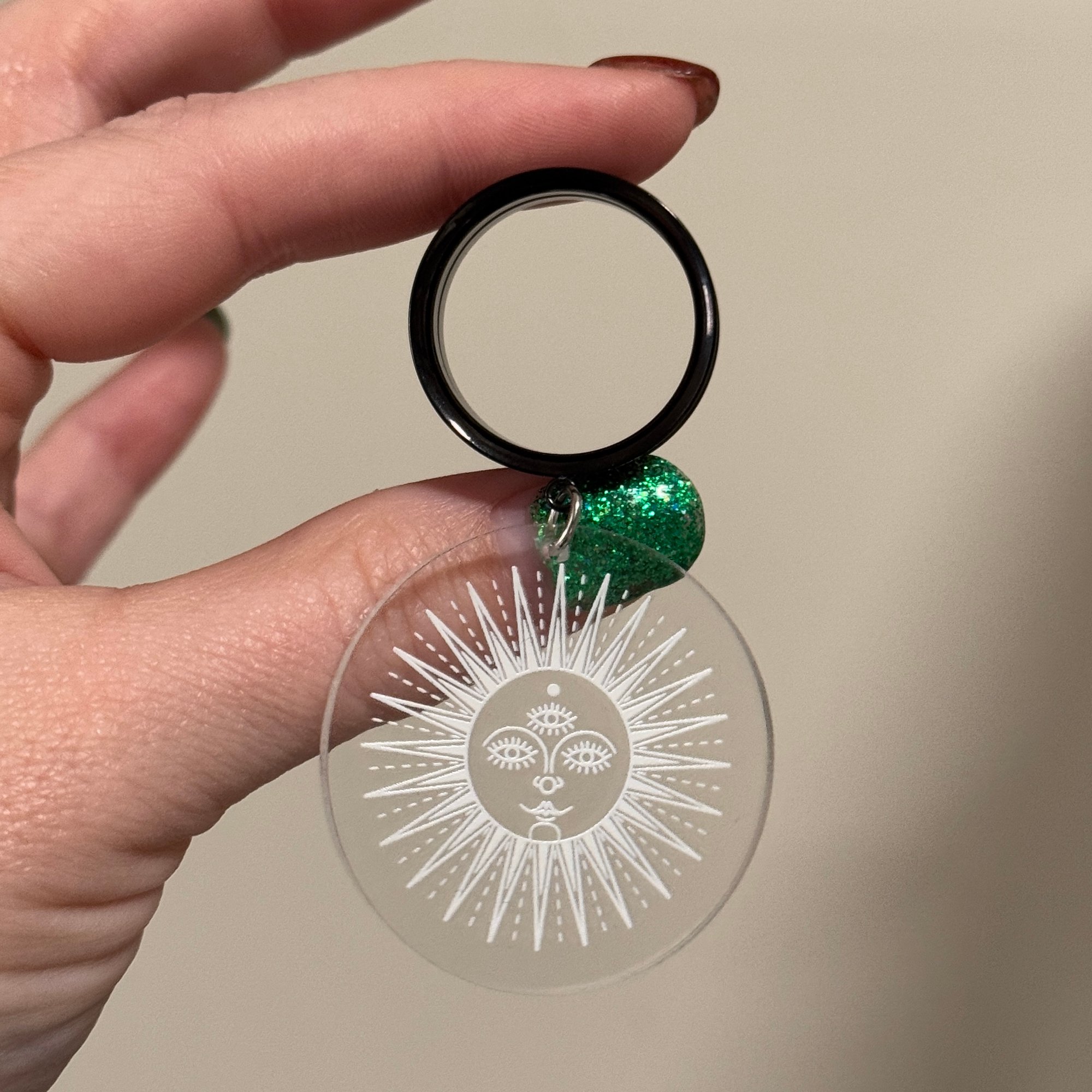 One pair of double flare surgical steel screw back tunnels with a fun clear sun disc dangle!
