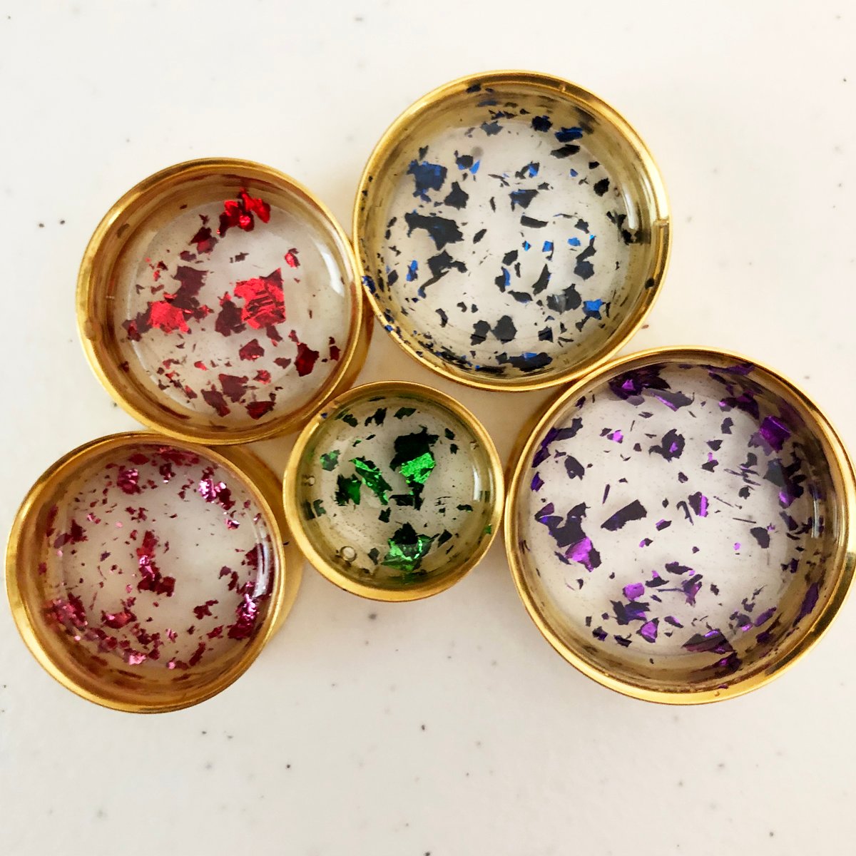 The flakes "pop" best in the gold tunnels in my opinion, so if you'd like more of a subtle look, I would go with black tunnels, but for more vibrance, I would go with gold! I tried to showcase the colors as best as I could for the example photos.