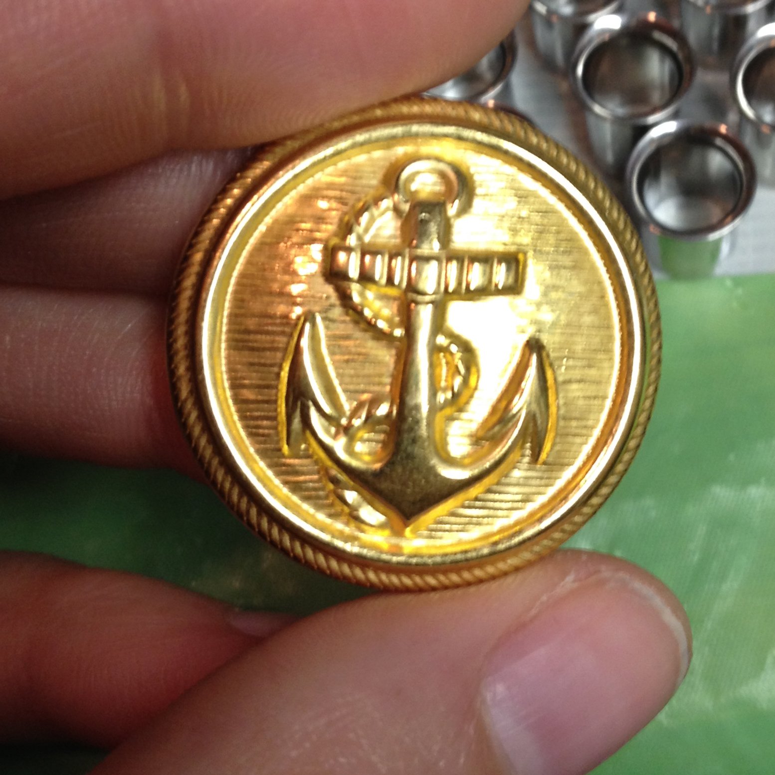 One pair of single flare surgical steel plugs (with o-rings) with this awesome gold anchor design!