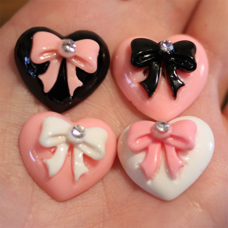 One pair of single flare surgical steel plugs (with o-rings) with this pretty heart and bow design! Four color combos available!