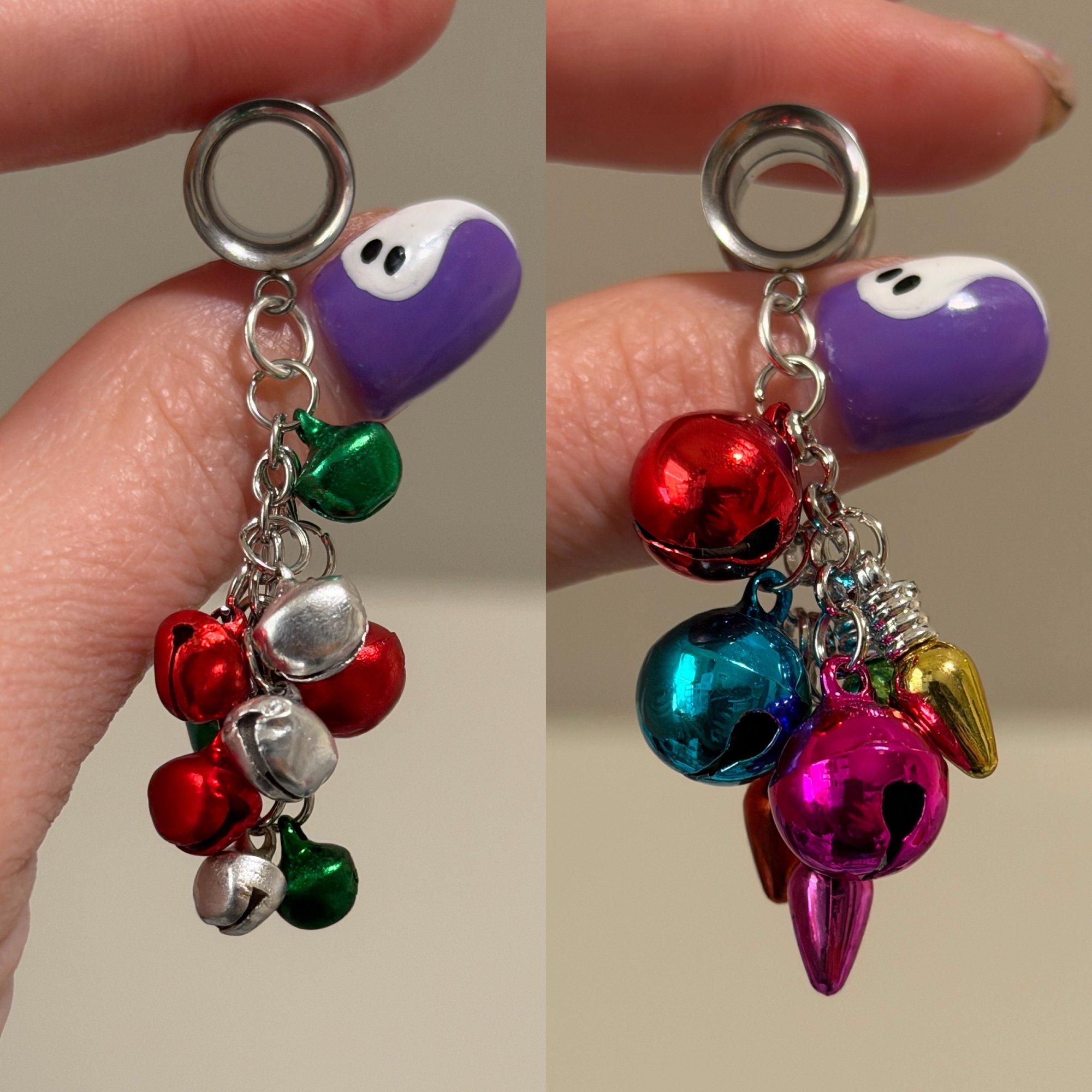 One pair of surgical steel saddles/tunnels a very jingle bell dangle designs and YES they do jingle!