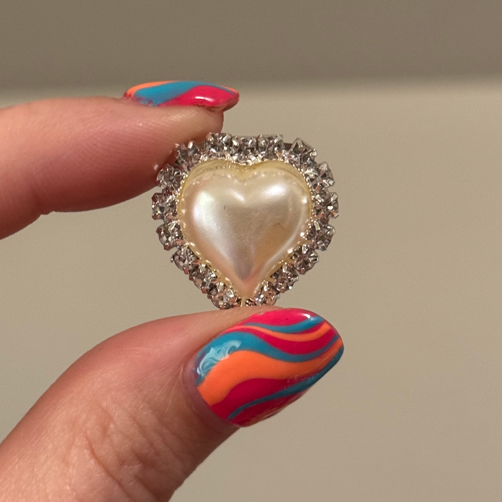 One pair of single flare surgical steel plugs (with o-rings) with this cute faux diamond pearl heart. Please note in the smaller sizes these plugs will be larger on the front and in the 3/4 size the pearls will not completely cover the front of the plug