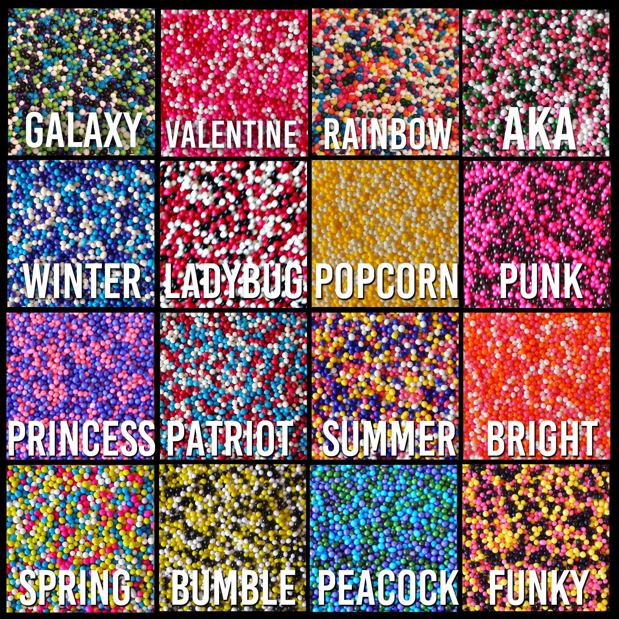 One pair of single flare surgical steel plugs (with o-rings), both containing real sprinkles!