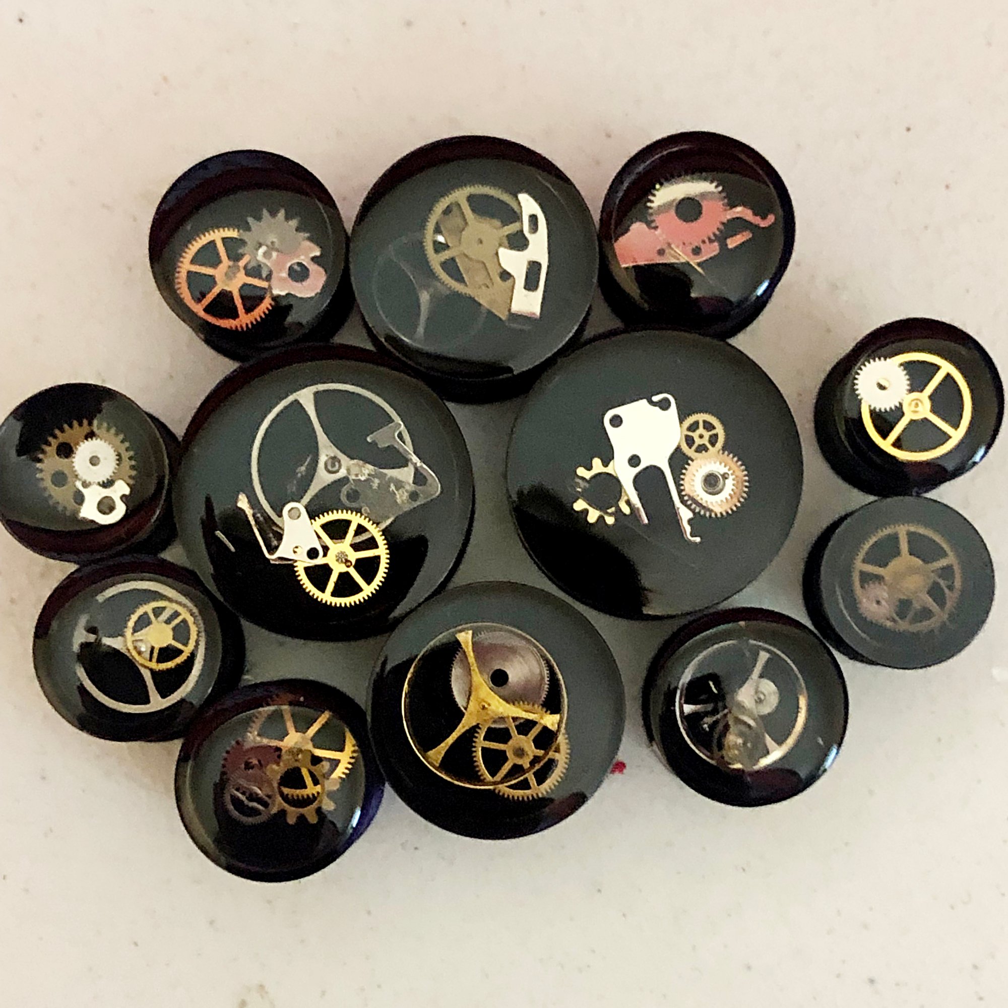 One pair of plugs with real steampunk watch parts inside! Each pair is handmade to order so each plug will be a little different. They are single flare with o ring. You have your choice of clear or black backgrounds in the ordering dropdown box!